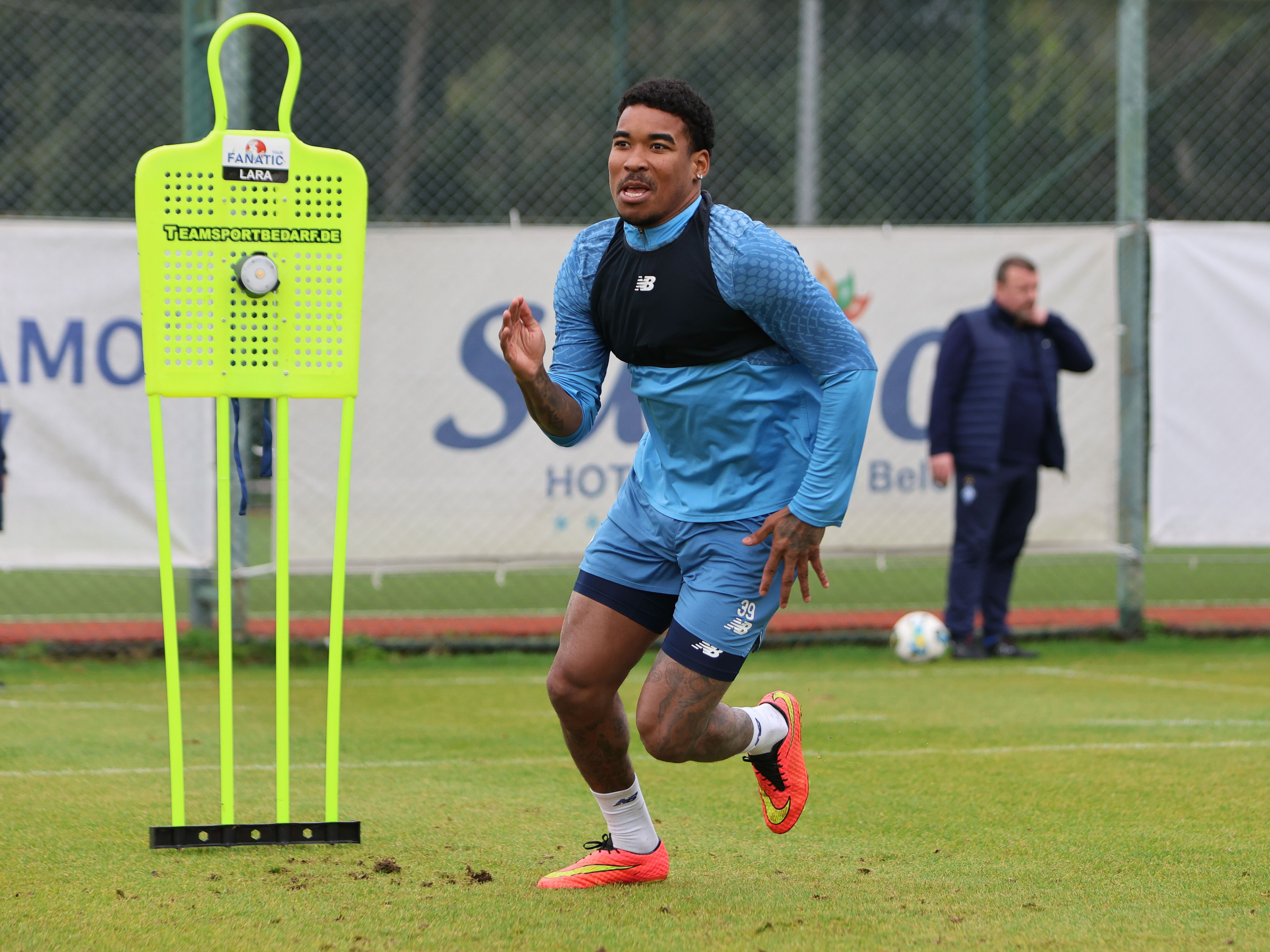 На іншій локації один гравець мав наздогнати іншого за певний час, не заступаючи у коло, обмежене тренувальними фішками.
